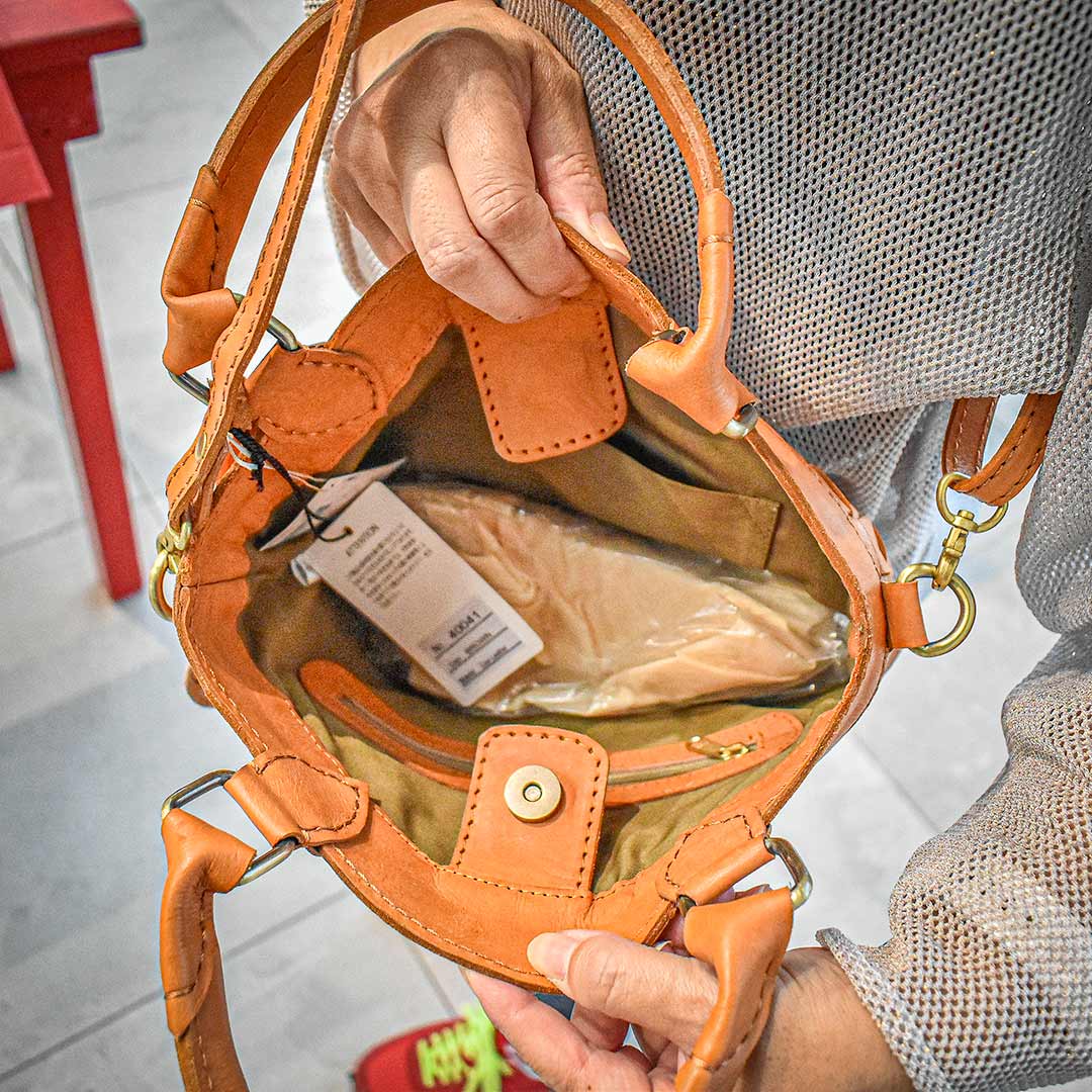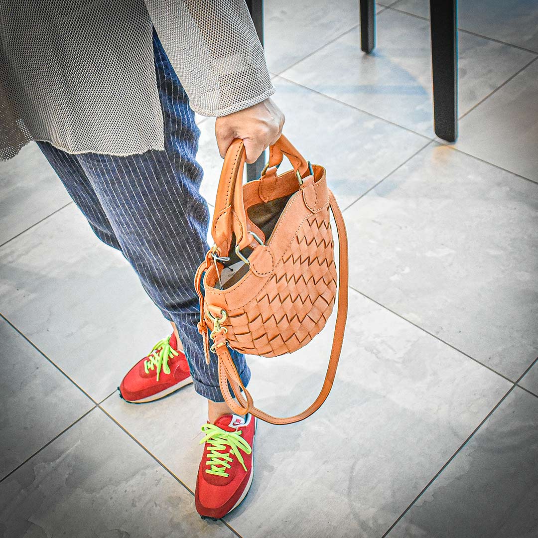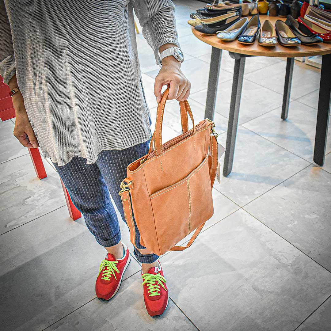 財布と電話を入れるだけなら小さいバッグでいい。確かにそうなんですが、そこをあえて大きくするのが個性でありおしゃれです。たとえばこんな総レザーのリーズナブル牛革バッグ。