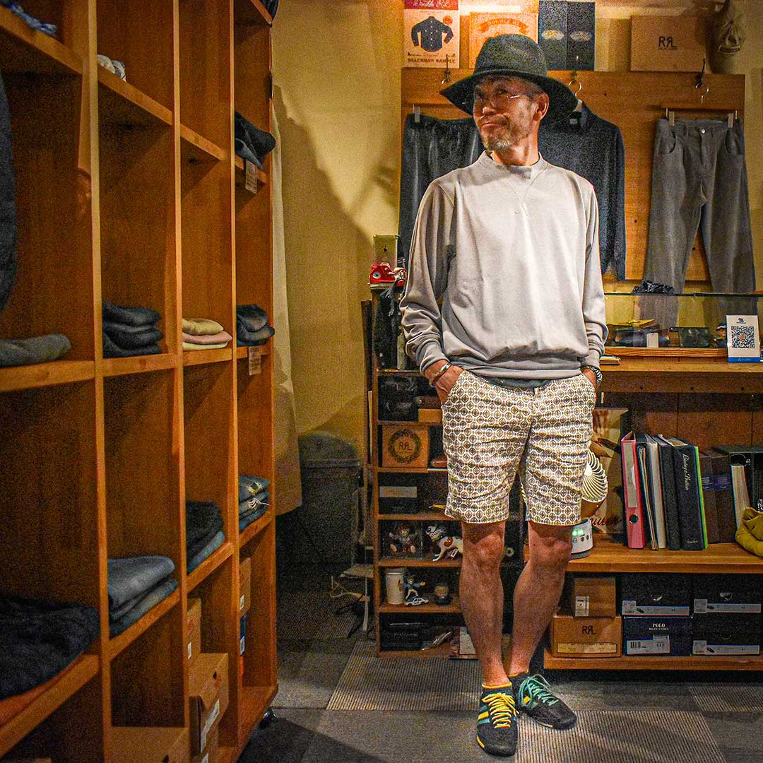 夏から秋に変わるほんの少しの間、長袖×ショーツという着こなしが楽しめます。私はこの期間が大好きです。夏から秋に変わる風を着こなしを通して感じられます。