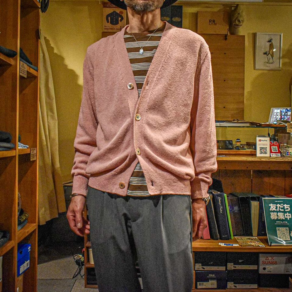 | 着こなし/その他 | ややくすんだピンクに絶妙な味わいがあります。春秋はお気に入りのTシャツと合わせて、秋冬はボタンシャツをインにジャケット、ダウンベスト等のインナーで差し色として強いスパイスとなってくれる一枚です。